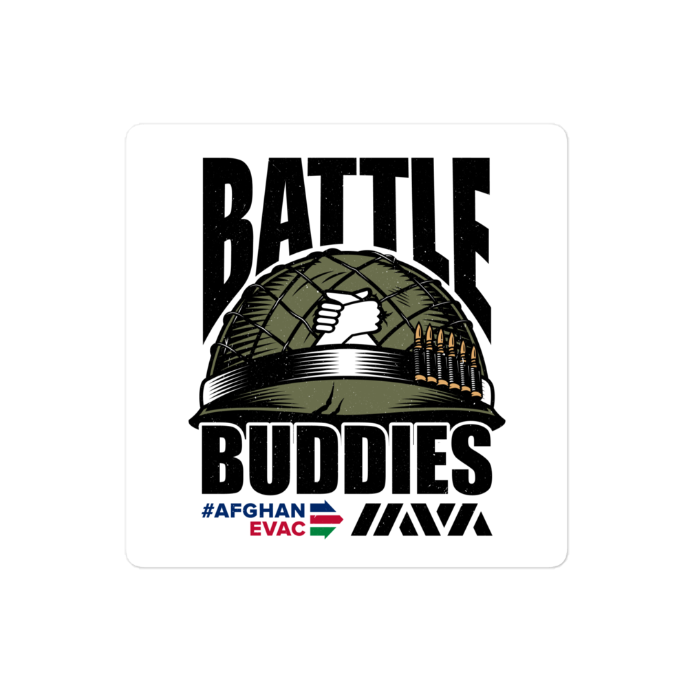Every sticker helps spread the word about the Battle Buddies court support effort—a veteran- and civilian-led show of solidarity for Afghan allies navigating immigration court.