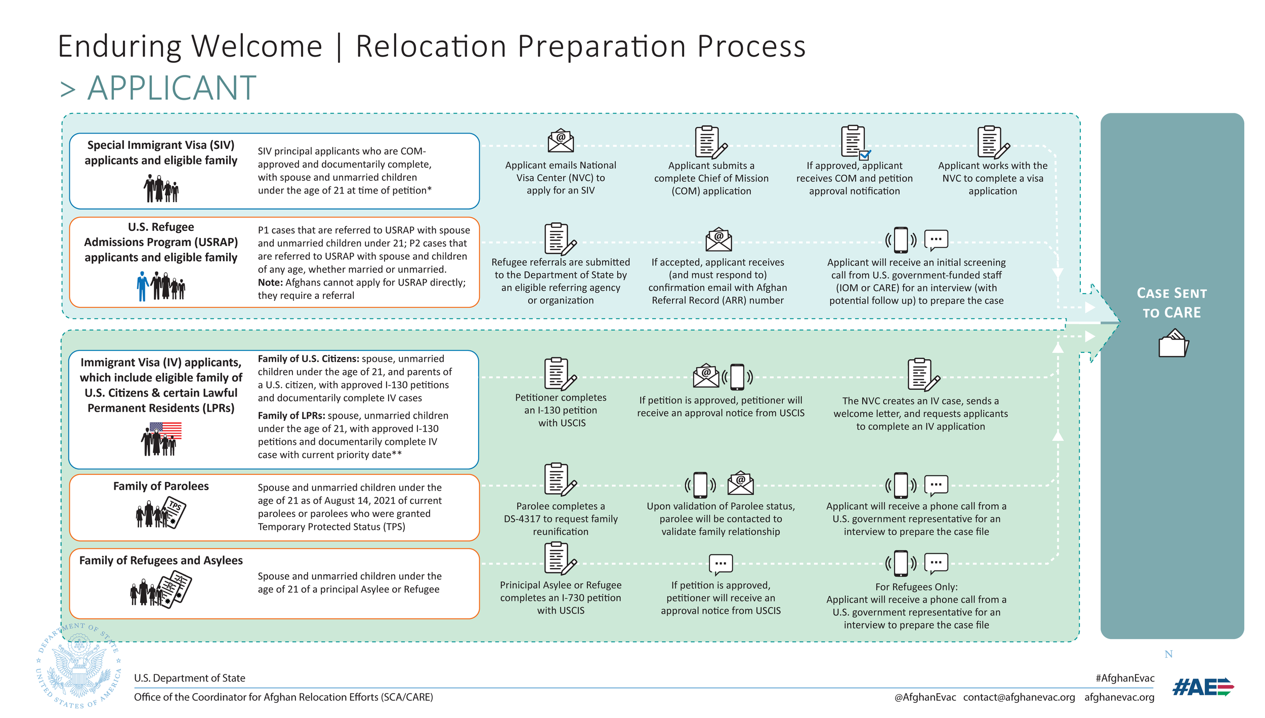 This document was built in collaboration with the United States Department of State Coordinator for Afghan Relocation Efforts (CARE) with input from numerous U.S. government agencies and entities.
